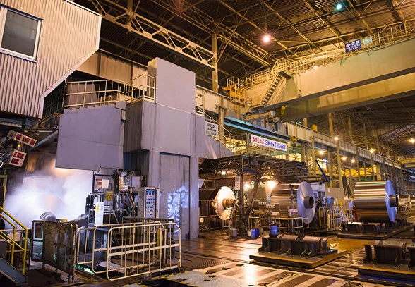 名古屋製造所は、アルミニウム板材を年間30万トン以上量産する国内最大級の製造拠点です。UACJの主力工場として、鋳塊の製造から、熱間圧延、冷間圧延、表面処理や熱処理、矯正、切断などの仕上げ工程に至るアルミニウム板の一貫生産を行っています。