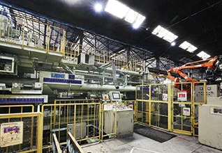 国内においても大型クラスとなる5,600トン押出プレスを有し、また高力押出に適した間接プレスを複数保有し、二輪車のフロントフォークや航空機材向けの熱処理に対応した竪型焼入炉や各種専用ラインを導入して万全の生産体制を整えています。