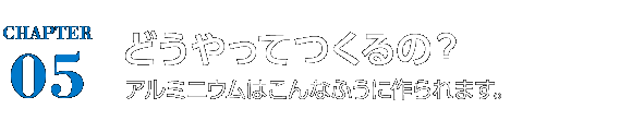 アルミニウムの歴史は浅く、発見されたのはわずか200年前のこと。発見が遅れた理由は「単体になりにくい」というその性質。アルミニウムはさまざまな化合物として鉱物や土壌などに隠れており、天然の金属としては産出されないため、なかなか発見できなかったというわけです。
