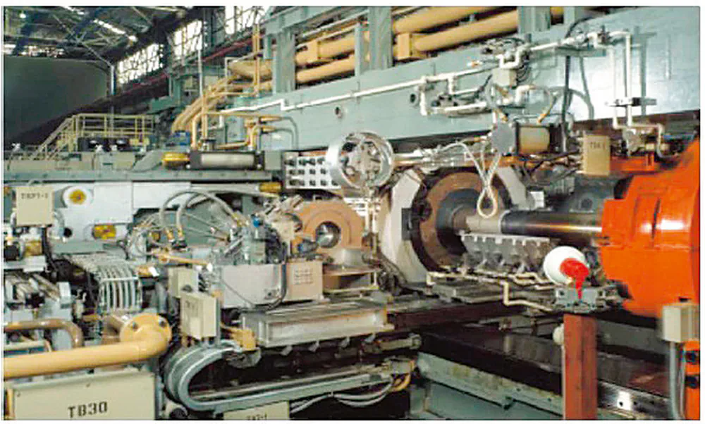 The hot-rolling mill in operation at Fukui Works