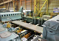 This is one of the world's largest hot-rolling mills, measuring 400 meters in length and 4.3 meters wide. An AGC system is used to automatically control sheet thickness, ensuring that the resulting sheets are of high quality.