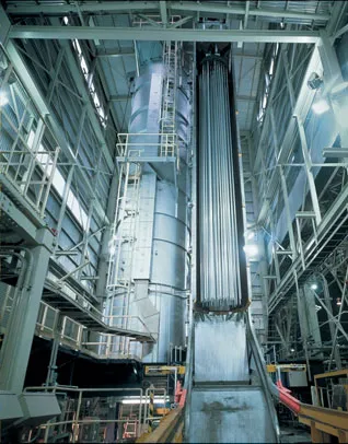 The Nagoya Works is the core of UACJ’s extrusion operations, supplying all tubing, bar, and profile extrusions with extremely high quality requirements, primarily for automotive heat exchangers and transportation equipment such as motorcycles, trucks, and rolling stock. The facility houses a 5,600-ton extrusion press, which is one of the largest in Japan, and several indirect presses suitable for high-strength extrusion. We have a complete production system with a vertical quenching furnace and various dedicated lines for heat treatment of motorcycle front forks and aircraft equipment.