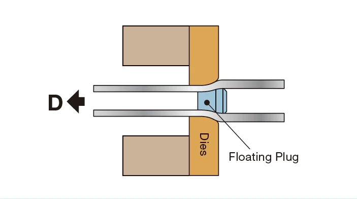 - The material is drawn as it passes between the die and the floating plug to improve the dimensional accuracy, surface quality, and mechanical strength.