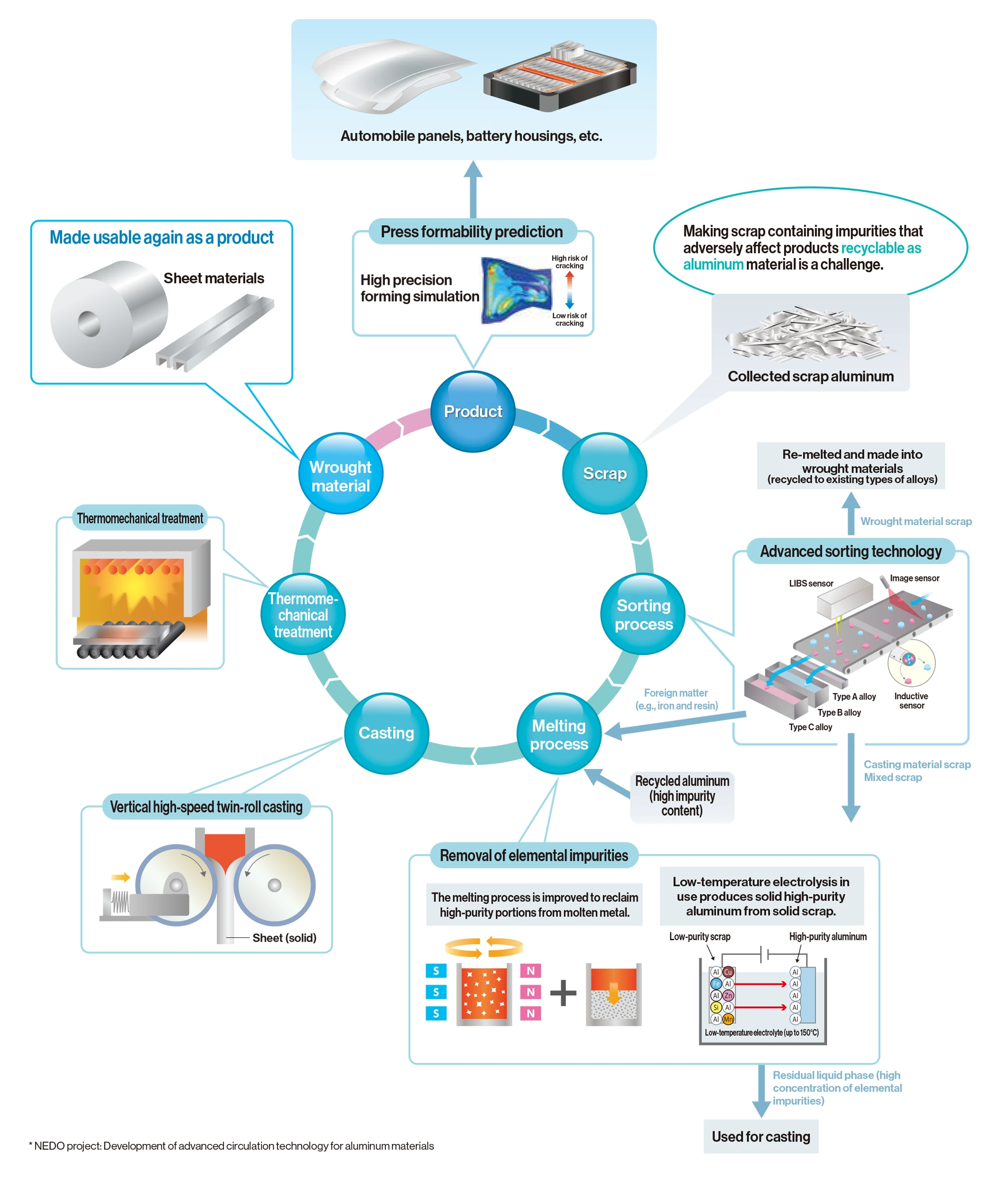 Pursuing a sustainable future in coexistence with the planet and aiming to contribute to a circular economy, we are striving to develop advanced sorting and recycling technologies for removing elemental impurities.