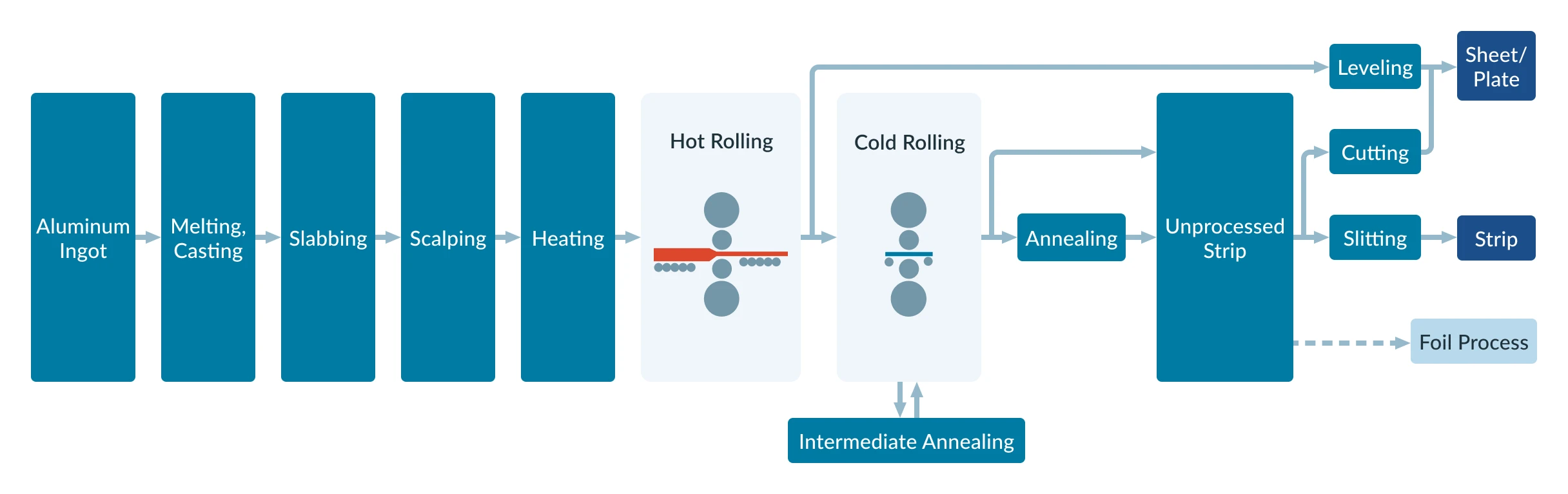 Plate is produced by flat rolling—a processing method in pair of parallel rollers is rotated to turn an aluminum ingot, called a slab, into a thinner product, a plate.