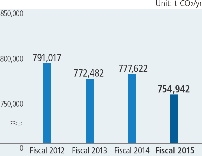 As a result of these activities, along with efforts for improving production efficiency by reallocating product mixes among plants after business integration, the results of per-unit-production for both CO2 emissions and energy consumption have been improving recently. In fiscal 2015, however, a year-on-year increase was reported as a result of the decrease in domestic production.