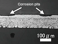 Cross sectional photo after corrosion testing