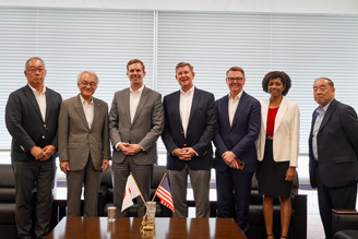 UACJ Corporation (head office: Chiyoda Ward, Tokyo; president: Shinji Tanaka) announced today that a delegation of government officials from Kentucky, USA, led by Kentucky Governor Andy Beshear visited its head office in Japan on July 19 to meet with Chairman of the Board Miyuki Ishihara and Corporate Strategy Division Director Joji Kumamoto. The delegation included Kentucky Economic Development Cabinet Secretary Jeff Noel, Kentucky Transportation Cabinet Secretary Jim Gray, as well as the governor’s Chief of Staff La Tasha Buckner, and Asia Office Executive Director of Kentucky’s Department for Business and Community Development, Mike Takahashi. Together they discussed the current status and future prospects of the UACJ Group’s business operations in Kentucky.