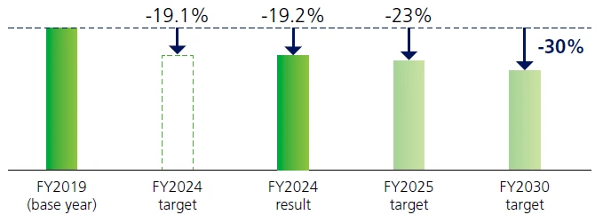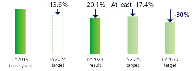 In June 2022, we announced our challenge to achieve carbon neutrality in Scope 1 and 2 by 2050 and, as a milestone on that path, our aim to reduce CO2 emissions by 30%*3 in fiscal 2030. For Scope 3, in December 2023 we announced the goal of aiming to reduce CO2 emissions by 30%*4 in fiscal 2030 through expansion of recycling and, by 2050, minimizing GHG emissions by collaborating with various supply-chain partners to maximize recycling and reduce GHG emissions throughout the entire supply chain.