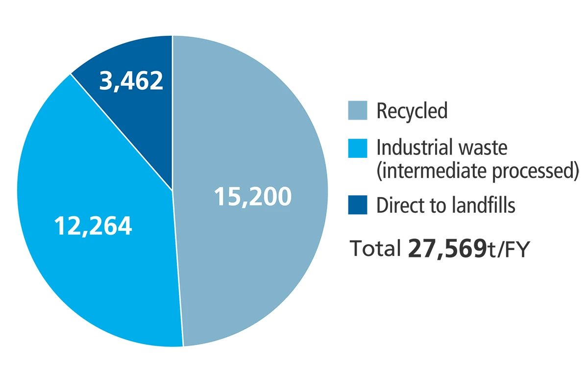 We will continue doing our part to create a recycling-oriented society by reducing and recycling industrial waste and promoting the conversion to more efficient resources.