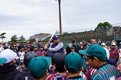 UACJ also held a baseball clinic for elementary school students on baseball teams in Sakai, Fukui Prefecture, where the Fukui Works is located. On November 12, Swallows catcher Yuhei Nakamura and former Swallows players provided instruction to 121 young baseball players.
