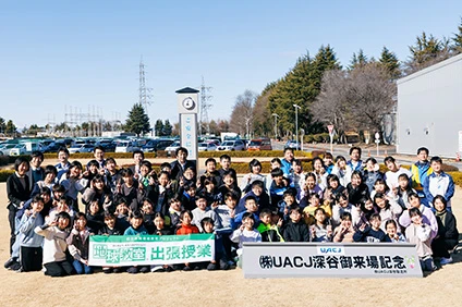 UACJ employees also gave presentations on the topic “Earth-Friendly Aluminum” to classes at Akadomari Elementary School in Sado, Niigata Prefecture on November 7 and at Ikaho Elementary School in Shibukawa, Gunma Prefecture on December 14. The classes highlighted aluminum’s high 90% recycling rate and how its strength and lightness help make cars lighter. On January 26, the Fukaya Works hosted a class and provided a factory tour for students of Kamishiba Higashi Elementary School in Saitama Prefecture.