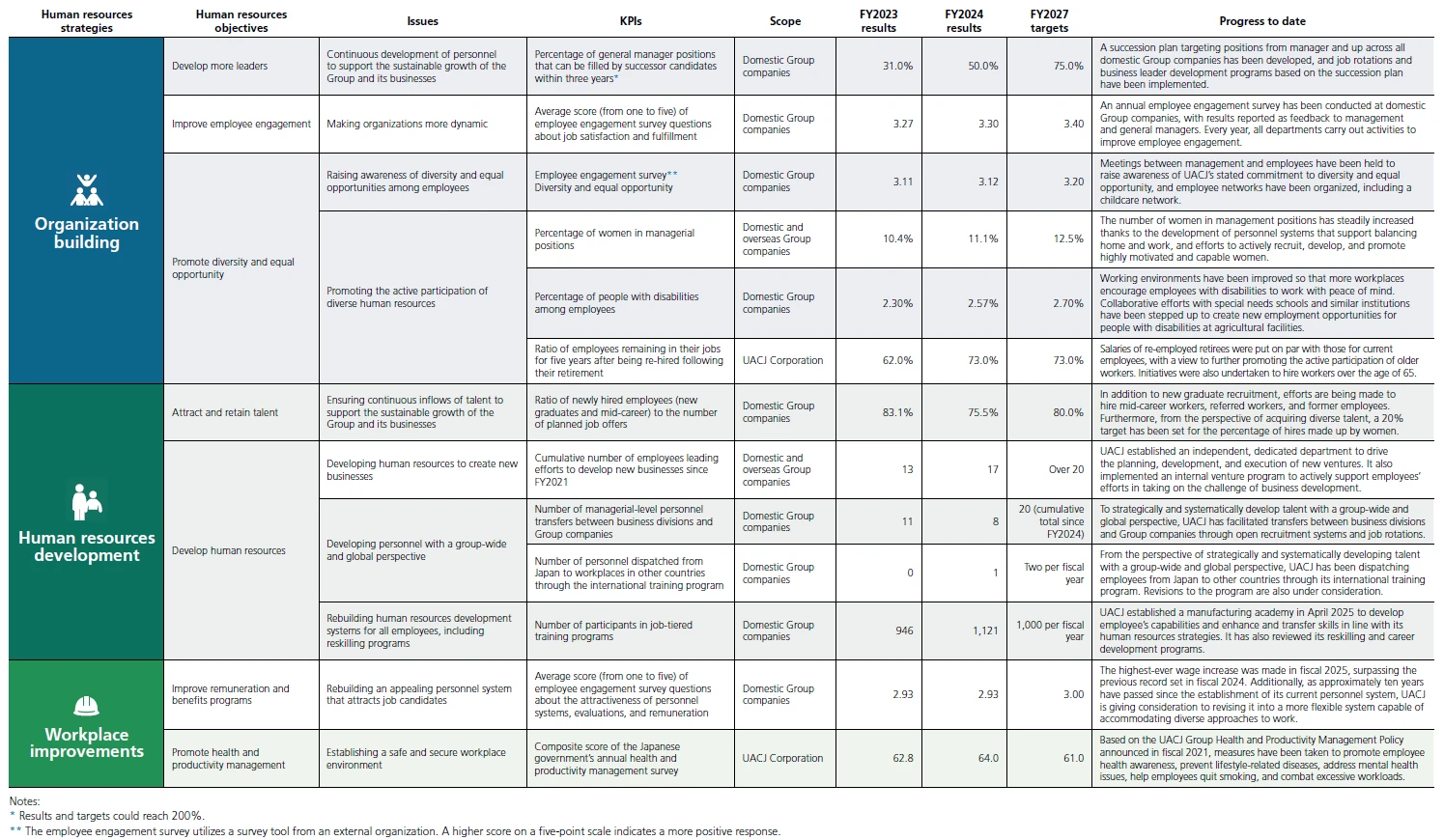 In particular, with regard to "enhancing human capabilities," we are currently visualizing the gap between the ideal human resources portfolio and the current situation at each department so as to realize our long-term management vision "UACJ VISION 2030." We aim to close this gap through human resources strategies scheduled for implementation starting in fiscal 2026.