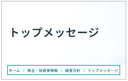 現在のページ位置が階層で表示されています。ページの現在地を確認したり、上の階層のページに直接戻りたいときなどに便利です。