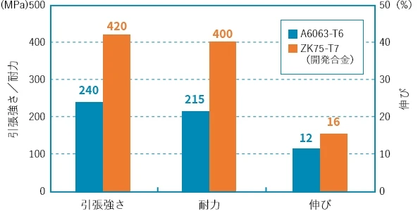- 6063の約2倍の強度を有する高強度合金です。