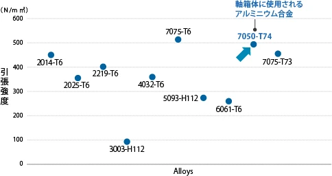 - 厚肉熱処理可能な高強度材である7050-T74の材料を使用しています。