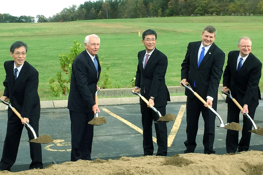 北米時間10月28日の午後、ケンタッキー州スティーブ・ベッシャー知事ご臨席のもと、UACJ岡田満代表取締役社長CEO、TAA白石重和社長兼CEO、Logan Aluminumランディー・シューメーカー社長が参加し、鍬入れ式を行いました。同州も、このプロジェクトを通して新たに創出される190名の雇用に大きく期待しており、必要なサポートを提供していただける予定です。