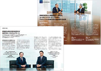また、スチュワードシップ・コードの策定をはじめ“投資家との対話”の要請が高まりつつあることを受けて開催した「機関投資家との対談」や、新たに就任した企業経営経験を持つ二人の独立社外取締役による対談など、新たな企画を設け、投資家の皆様をはじめ、多くの方に関心を持って読み進めていただけるよう工夫しています。