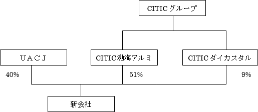 | 出資比率 | CITIC渤海アルミ51%、CITICダイカスタル9%、UACJ40% |