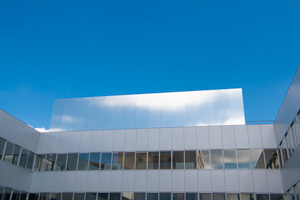 当新校舎は同学出身の建築家、妹島和世氏により設計されました。このたび、周囲の風景や空を映し、反射性のある仕上がりを実現できることをご評価いただき、当社のパネルをご採用いただきました。本パネルは、新校舎屋上の空調設備室外機置き場の中庭側に設置され、魅力的な空間づくりに寄与しています。