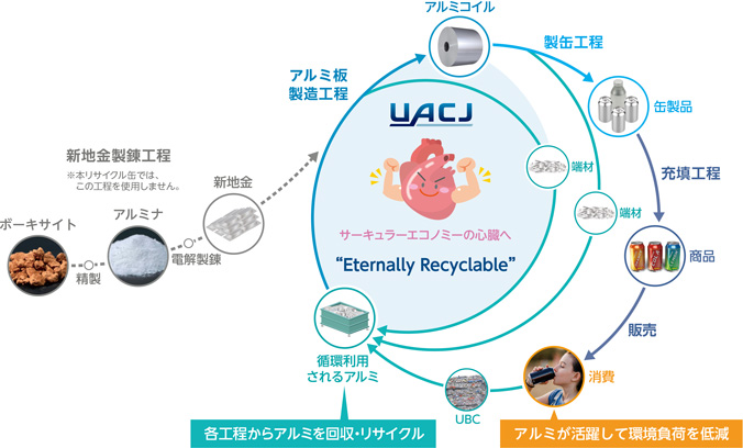 当社は、アルミニウムの水平リサイクルでの循環をさらに促進すべく、当社環境配慮製品ブランド「UACJ SMART」の展開などを通して、飲料分野含むサプライチェーン全体と協力して取り組んでまいります。そして今後も、アルミニウムのサーキュラーエコノミーの心臓となることを目指し、軽やかな世界の実現に貢献してまいります。