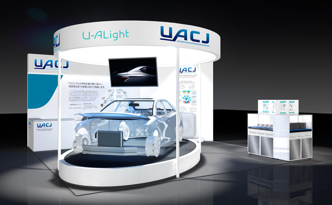 当社展示ブースでは、自動車分野向けアルミ板ブランド「U-ALight」や、CO2排出量削減効果の高い環境配慮型製品ブランド「UACJ SMART」のほか、自動車製品に関わる部品など事例を幅広く紹介し、当社製品のさらなる認知と採用の拡大を図ります。