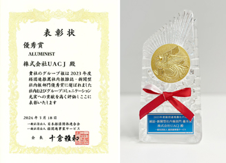 株式会社UACJは、当社のグループ社内報「ALUMINIST」が、「2023年度経団連推薦社内報審査」の雑誌・新聞型社内報部門で、応募作品116作品の中から最高位である優秀賞を受賞しましたので、お知らせいたします。当社は、2017年以来、特別賞、企画賞、総合賞などを受賞してきましたが、優秀賞の受賞は初めてとなります。