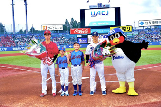 本活動は、プロ野球観戦を通じて子どもたちに夢や感動を伝えることを目的に2018年から実施しており、今回で5回目となりました。当日は、深谷市の小学生野球チーム「深谷メッツ」所属の小学生に始球式や花束贈呈、エスコートキッズを務めてもらったほか、チームメンバーで試合を観戦していただきました。始球式をしたり、プロ野球選手と話を交わした子どもたちからは、「選手と話せた」「選手が大きかった」「緊張した」といった喜びと驚きの声が届きました。