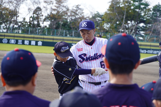 本イベントは、将来を担う子どもたちにスポーツの楽しさや魅力を伝え、スポーツを通した地域における次世代育成を目指すもので、4回目の開催となりました。当日は当社がトップスポンサーを務める東京ヤクルトスワローズOBの宮本慎也氏、上田剛史氏、河端龍氏に指導いただきました。