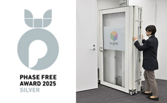 折りたたみ可能で設置や移設が容易なアルミ製ブースです。このほど、パーソナルブースorigami+workは、日常時と非常時のどちらでも役立つ商品として評価され、一般社団法人主催の第5回フェーズフリーアワードにてシルバー賞を受賞しました。本展示会では、1人用ブースを2台連結させることで2人用ブースとして利用できる新仕様をご紹介します。これにより、オンライン診療ブースとしても利用いただけるようになります。