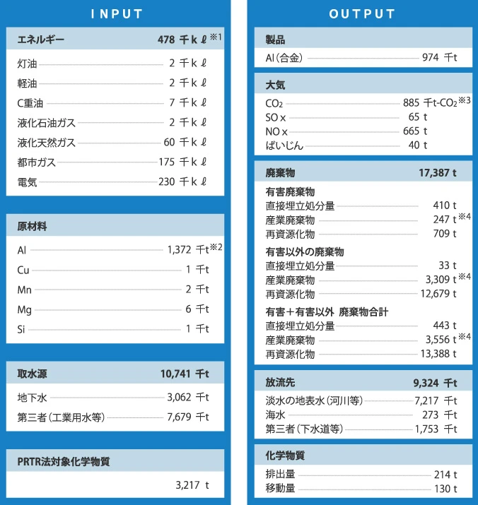 UACJグループでは、生産活動にともなって排出する環境負荷物質や産業廃棄物を低減するために、環境負荷の正確な実態把握に努めています。