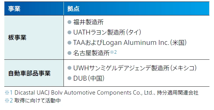 さらに、我々はASIの基準への理解を深め、情報を共有して、認定事業所を拡大させています。主力の板事業では、福井製造所、UATH ラヨン製造所、TAAおよびLogan Aluminum Inc.で取得済みで、現在、名古屋製造所の取得に向けて準備を行っています。また、UWHのメキシコ拠点やDUB※1などの自動車部品事業においても認証を取得しており、認証材をグローバル、かつ多品種で供給できる体制の構築を図っています。