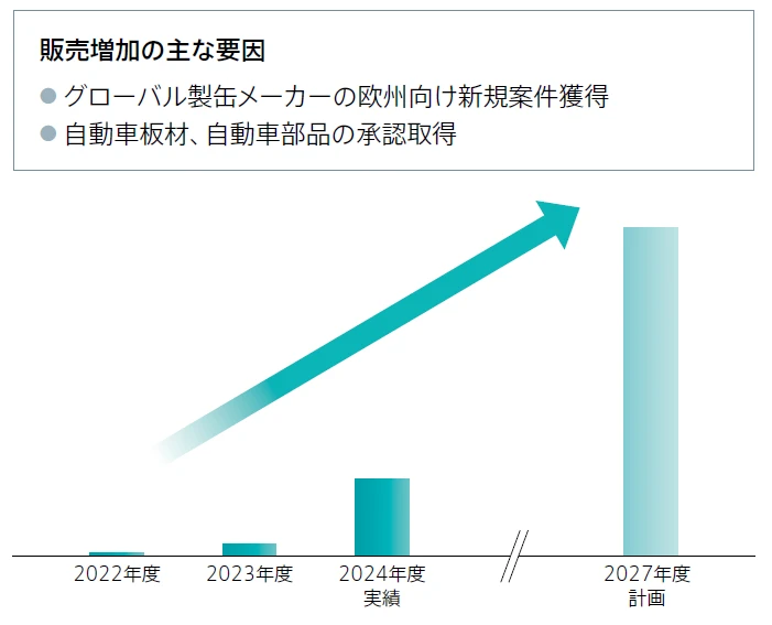 2024年度のASI認証材の販売数量は、2022年度比約20倍となり、2027年度に向けてさらなる拡大を計画しています。今後も、ASI認定事業所拡大によりグローバル顧客への供給体制を強化し、膨らむ世界需要の獲得を目指します。