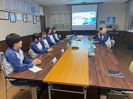 UACJは、新たな社内対話の機会として、社長が国内外の拠点を訪問して各地の社員と対話を行う「繋ぐ(つなぐ)対話会」を、2024年5月から実施しています。