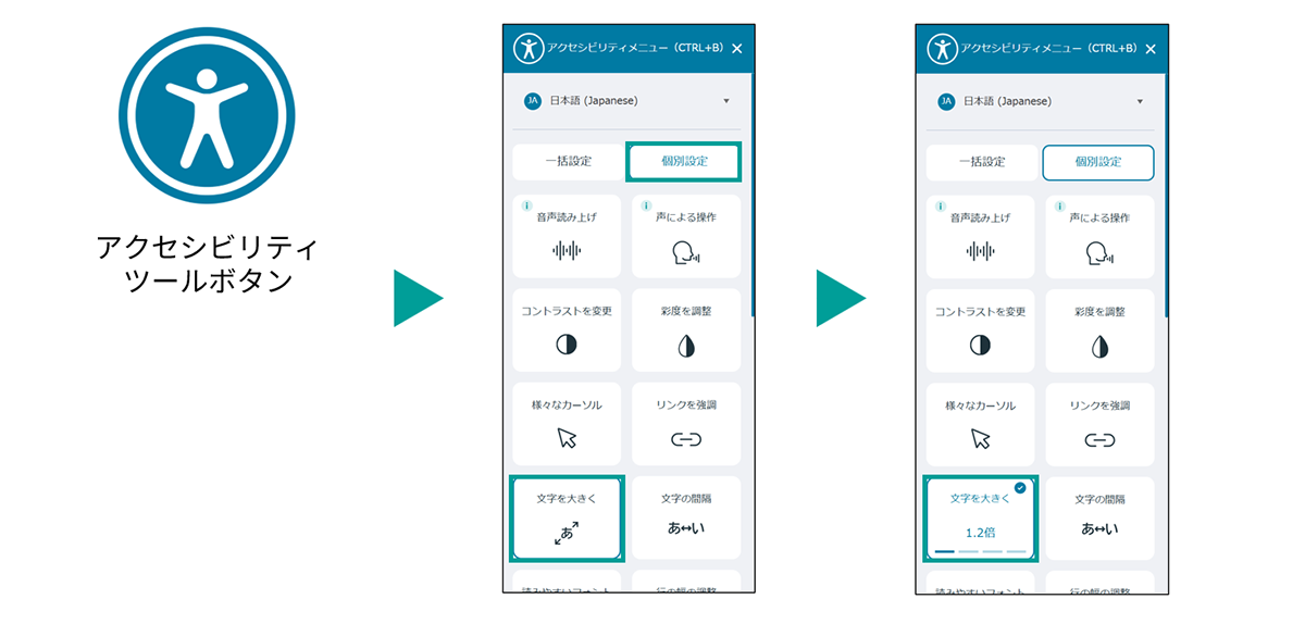 アクセシビリティツールの文字サイズ変更機能の使い方